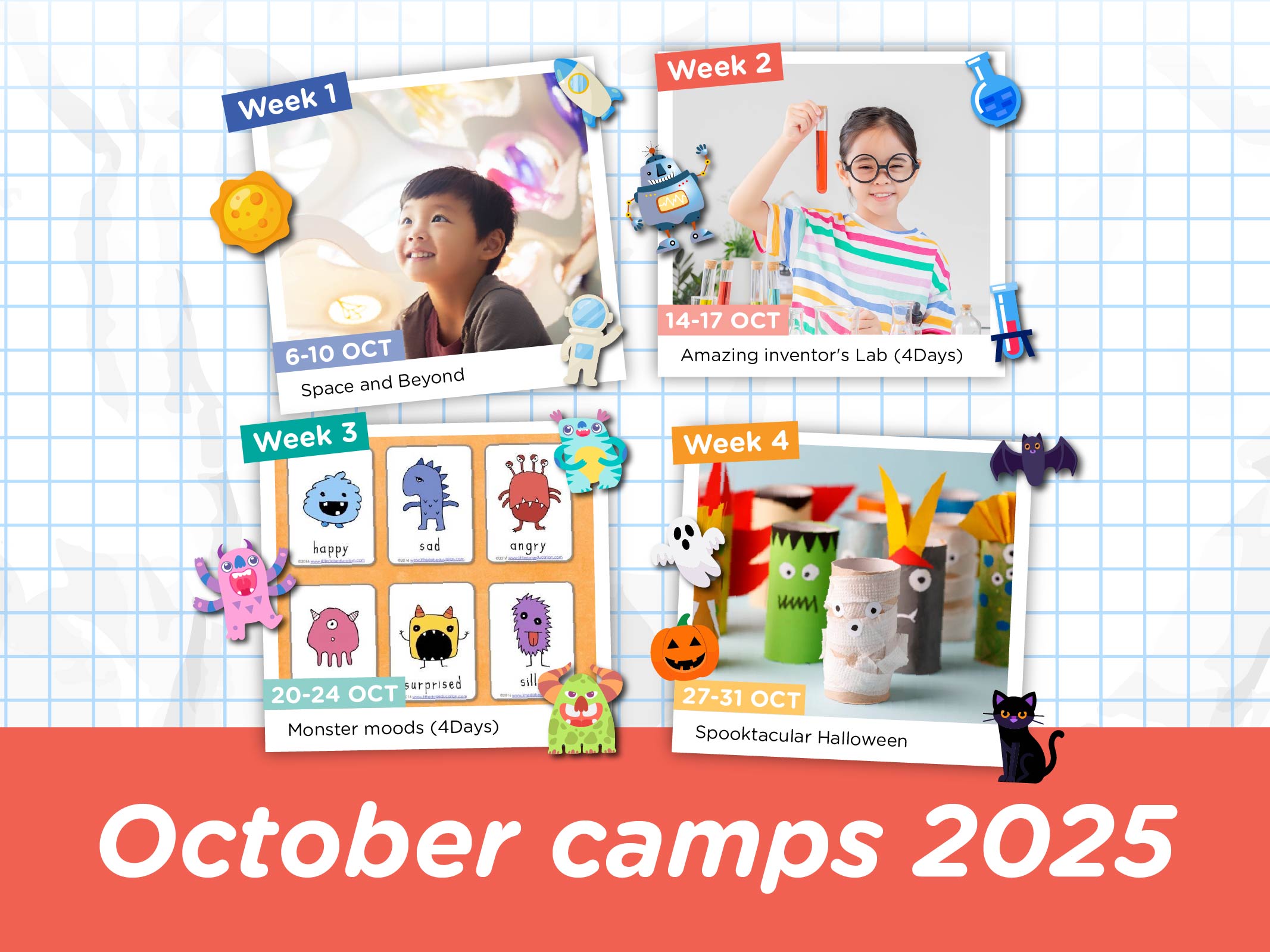 🎃 สัปดาห์ 4 (27–31 ต.ค.): Spooktacular Halloween – น้ำยาลึกลับ + แกะสลักฟักทอง + ปาร์ตี้ฮาโลวีนสุดมันส์!
